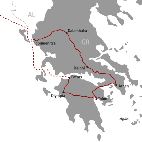 Delphi mit seinem Apollon-Heiligtum gilt als bedeutendste Ausgrabungsstätte der klassischen Zeit. Der Abstecher über Distomo zum orthodoxen Kloster Osios Lukas, mit seinen Mosaiken aus dem 11. Jahrhundert, begeistert. Anschliessend erwartet uns Athen – die Hauptstadt Griechenlands! Folklore live erleben wir in der Athener Altstadt – der Plaka. Hier können wir Sirtaki tanzen und griechische Spezialitäten verkosten.