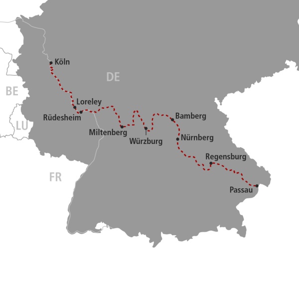 Nach dem Zusammenfluss des Main-Donau-Kanal mit der Donau erreichen wir die historische Stadt Regensburg. Auf dem geführten Stadtrungang entdecken wir die beeindruckenden Bauwerke, die charmanten Gassen und die Geschichte, die Regensburg zu bieten hat. Am frühen Abend legen wir wieder ab. Heute erwartet uns ein festliches Galadinner an Bord der MS ELEGANT by Amadeus. Geniessen wir einen unvergesslichen letzten Abend mit kulinarischen Köstlichkeiten und einer eleganten Atmosphäre.